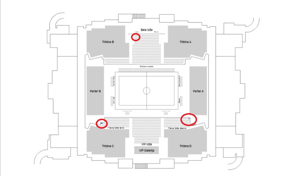 Radi se o jednom mestu u gornjem desnom delu bele lože u odnosu na teren i cena za nju je 2.500 dinara. Tu je i jedno mesto u „plavoj loži desno“ koje košta 3.500 dinara, kao i dva u „plavoj loži levo“ po istoj ceni.
