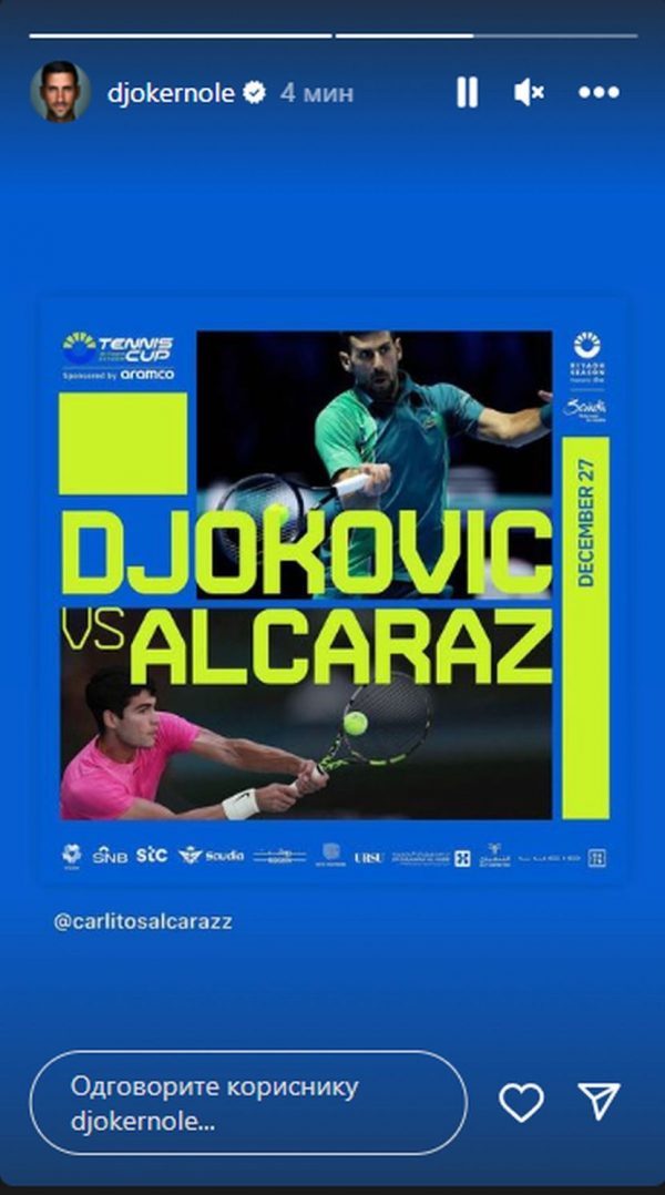 Krajem meseca, tačnije 26. i 27. decembra u Rijadu će da bude održan egzibicioni turnir, a meč će da odigraju Novak Đoković i Karlos Alkaraz. To su potvrdili Srbin i Španac.