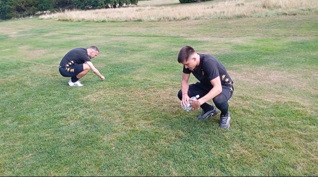 U akciji su bili Aranđel Stojković i zamenik kapitena Vanja Dragojević. Pronašli su parče trave i na njemu tražili detelinu sa četiri lista.